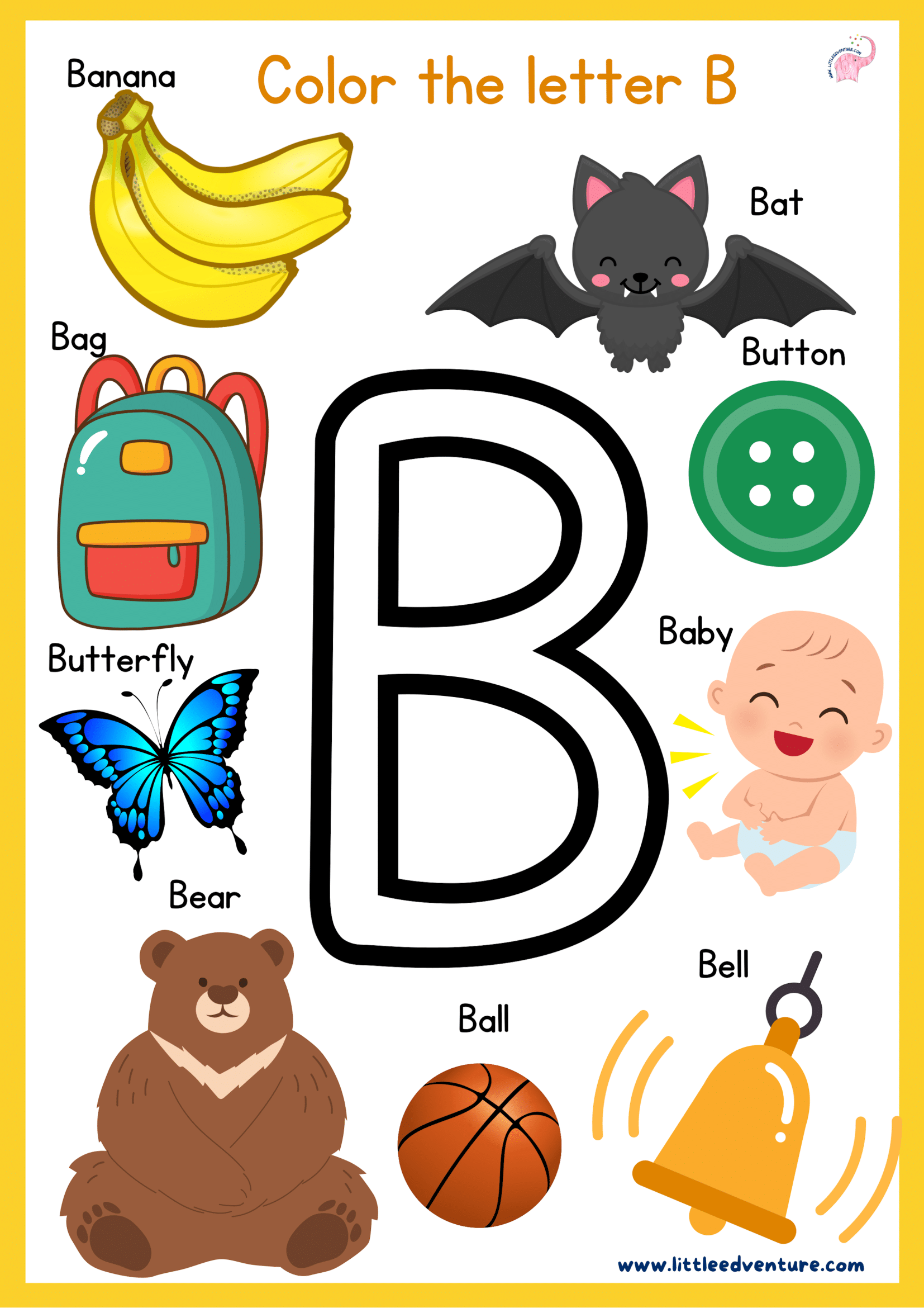 Help your child learn the letter B with LittleEdventure’s Alphabet & Phonics Book — a fun, story-based learning experience for kids aged 3–7 years.