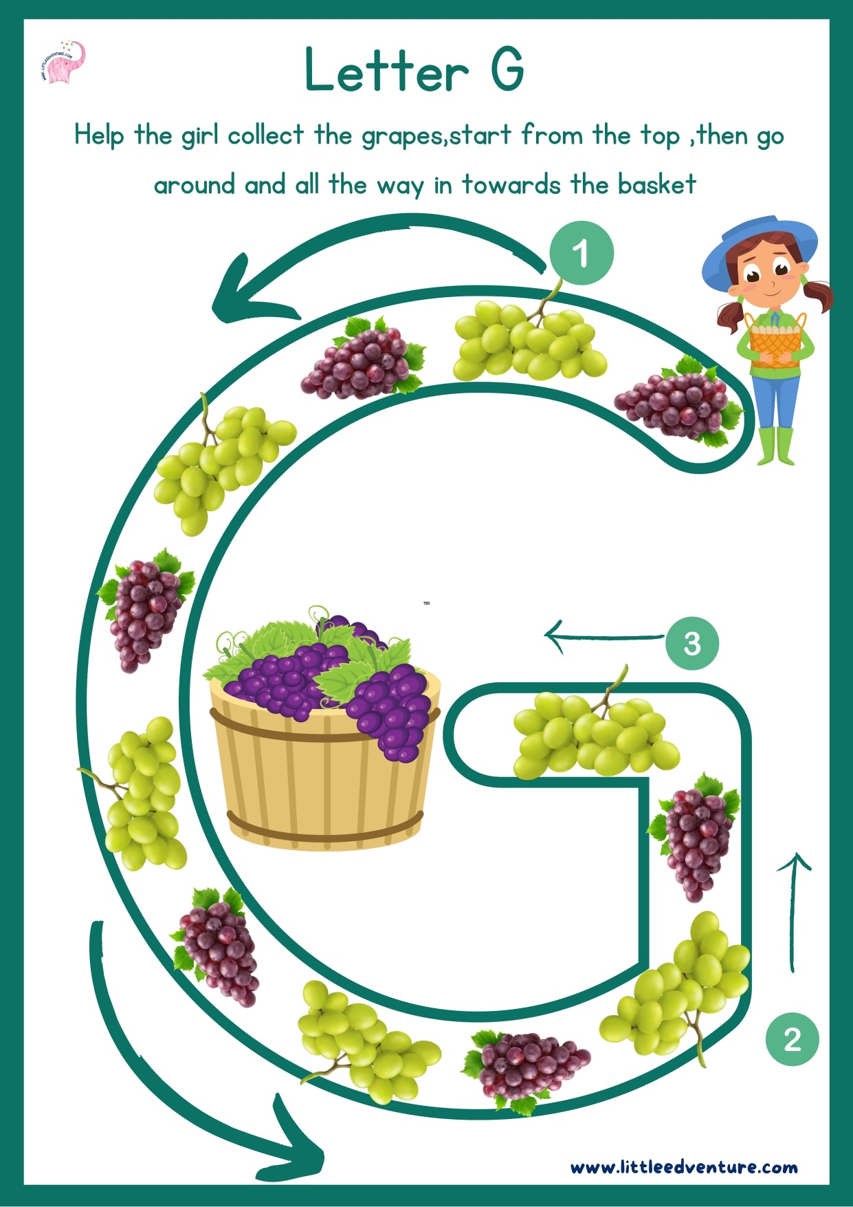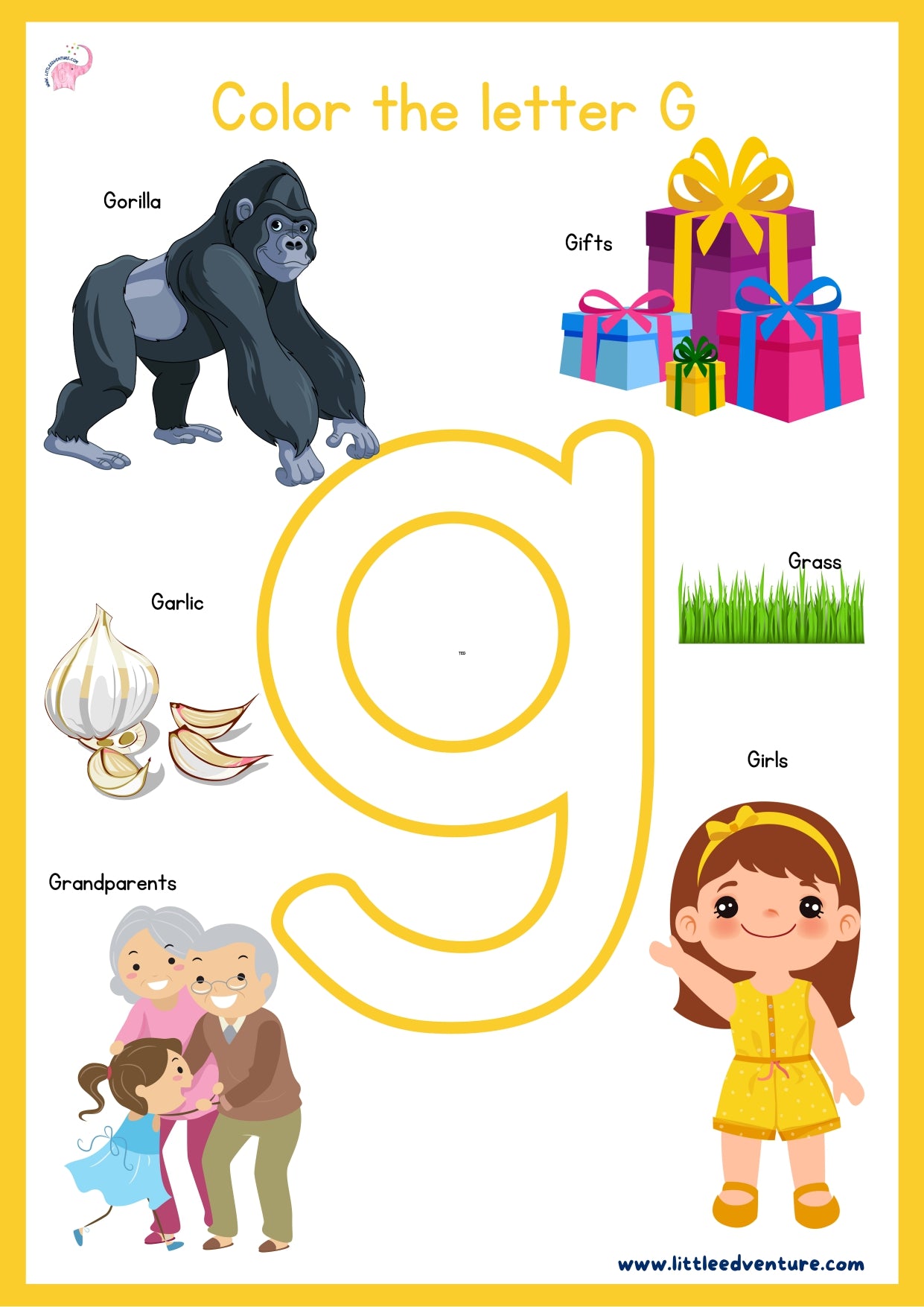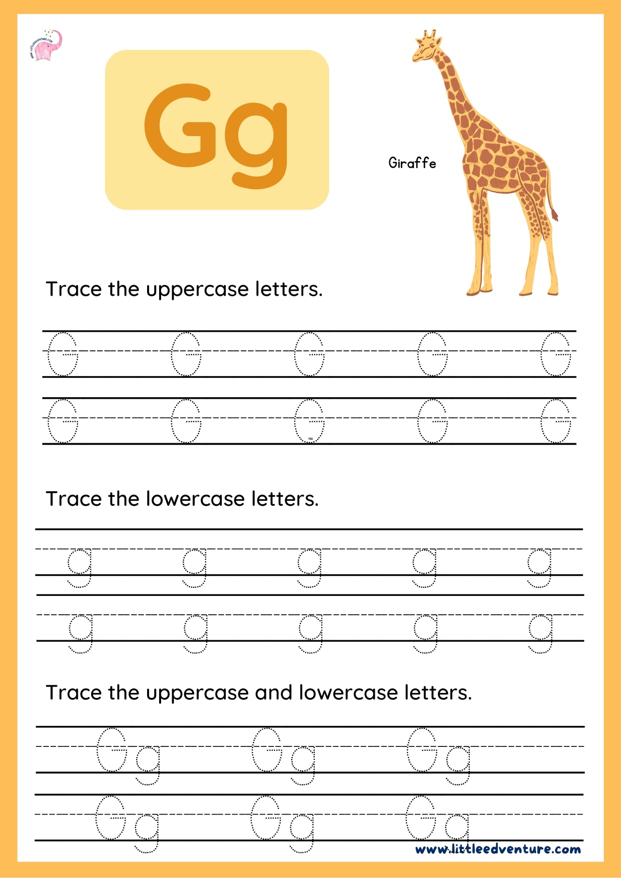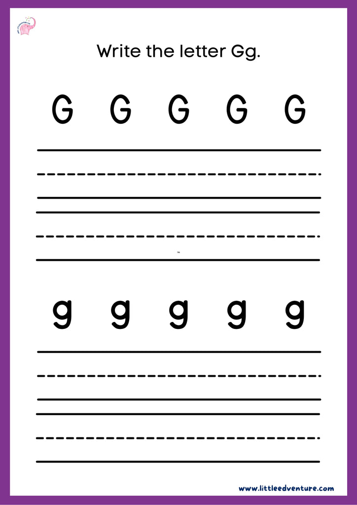 Help your child discover the letter G with LittleEdventure’s Alphabet & Phonics Book — an engaging alphabet tracing and phonics workbook designed for kids aged 3–7 years.