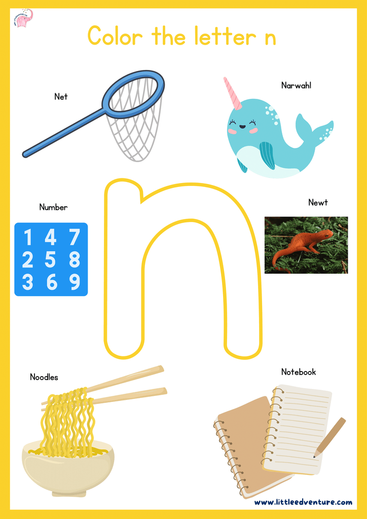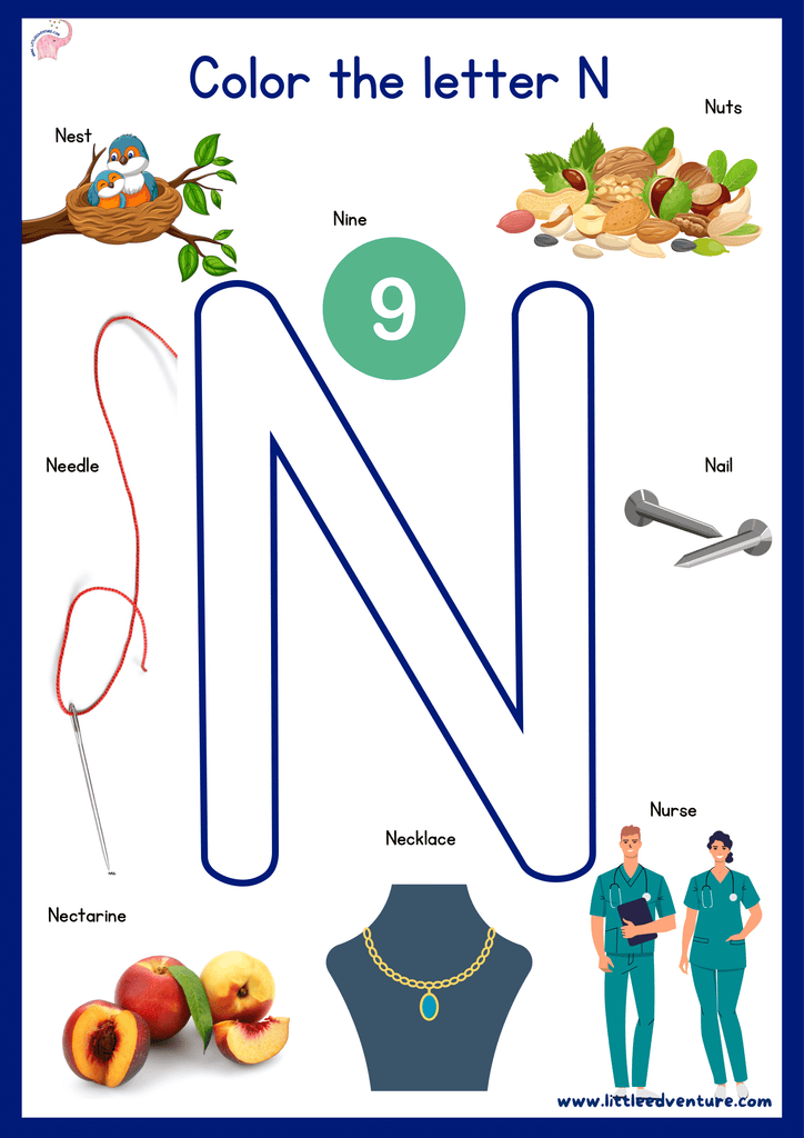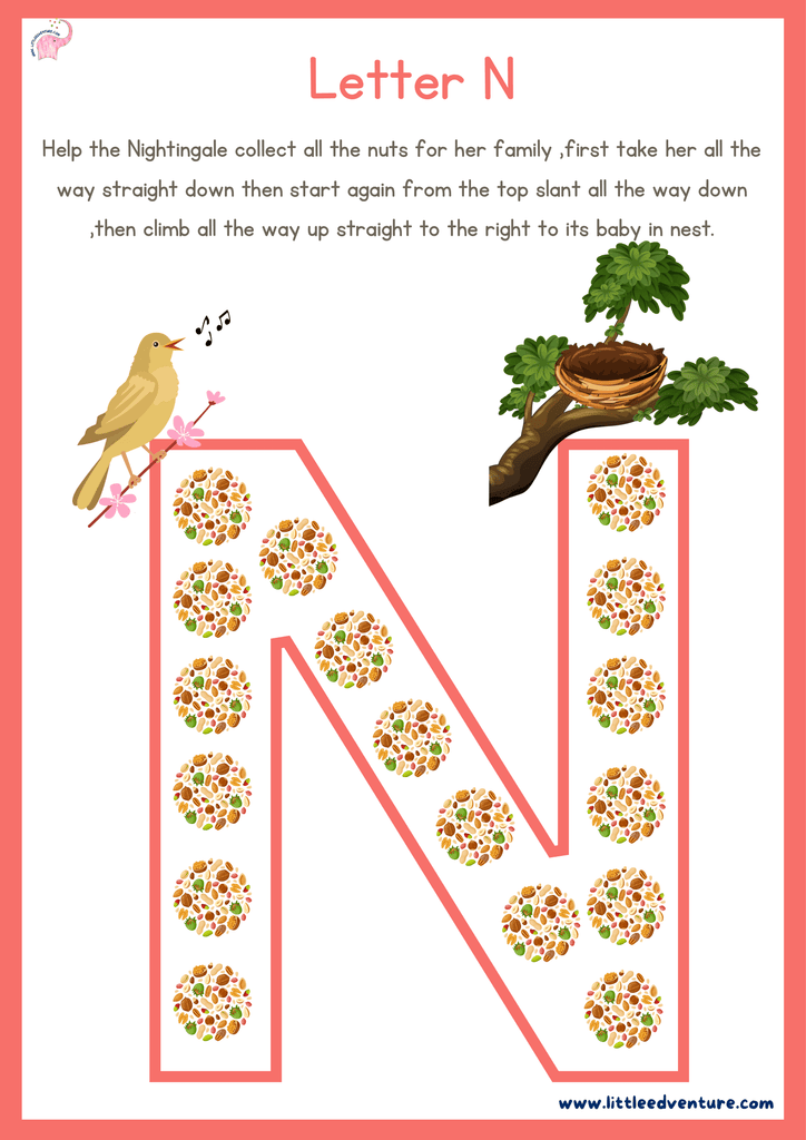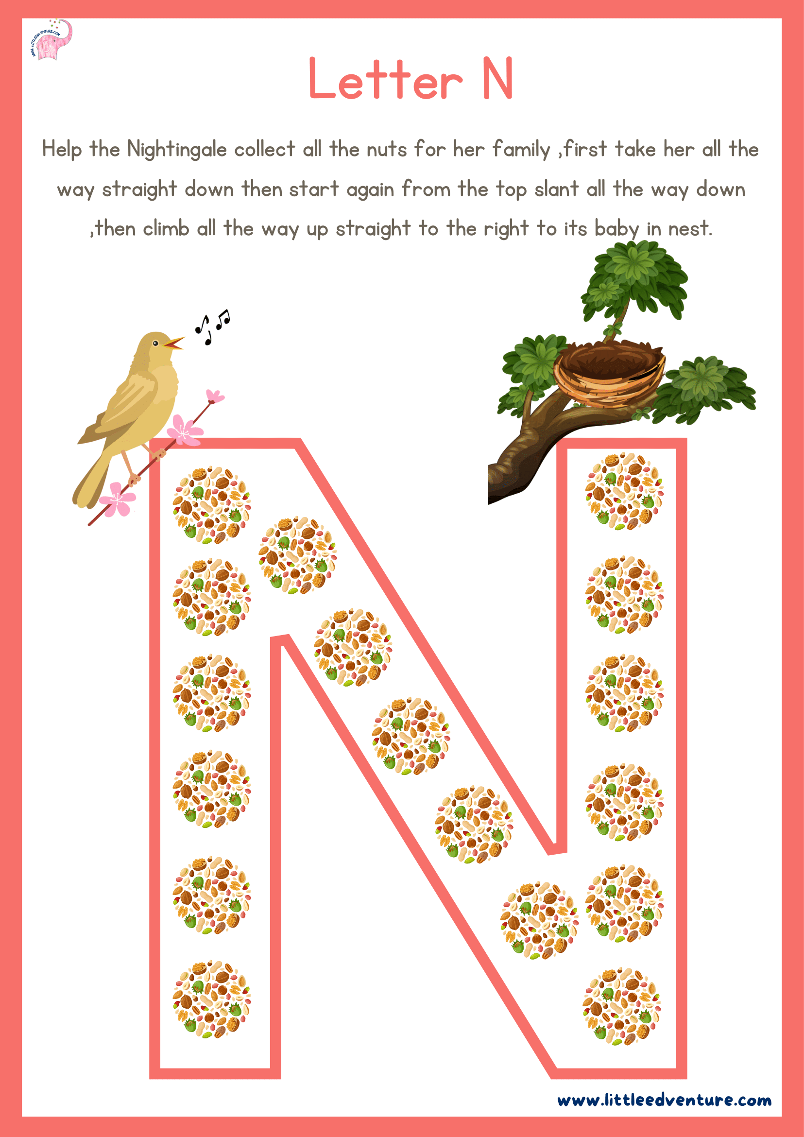 Help your child learn the letter N with LittleEdventure’s Alphabet & Phonics Book — a fun alphabet tracing and phonics workbook for kids aged 3–7 years. With engaging stories, bright pictures, and tracing activities, little learners explore the letter N with Nest, Nose, and Net — making preschool learning interactive and enjoyable!